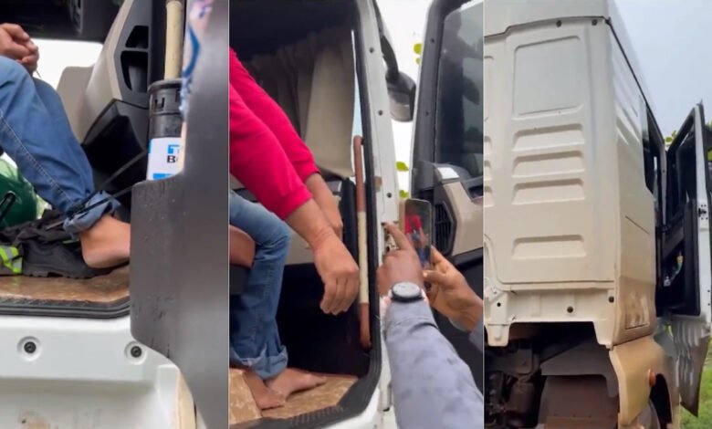 Após o resgate, ele foi encaminhado a um hospital com ferimentos nas mãos e nos pés. O caminhoneiro foi orientado a registrar boletim de ocorrência.