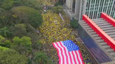 Ato bolsonarista em SP tem bandeira gigante dos EUA e pedido por anistia
