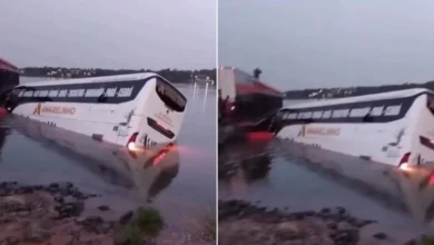VÍDEO: Ônibus cai em rio ao tentar fazer travessia para o Maranhão