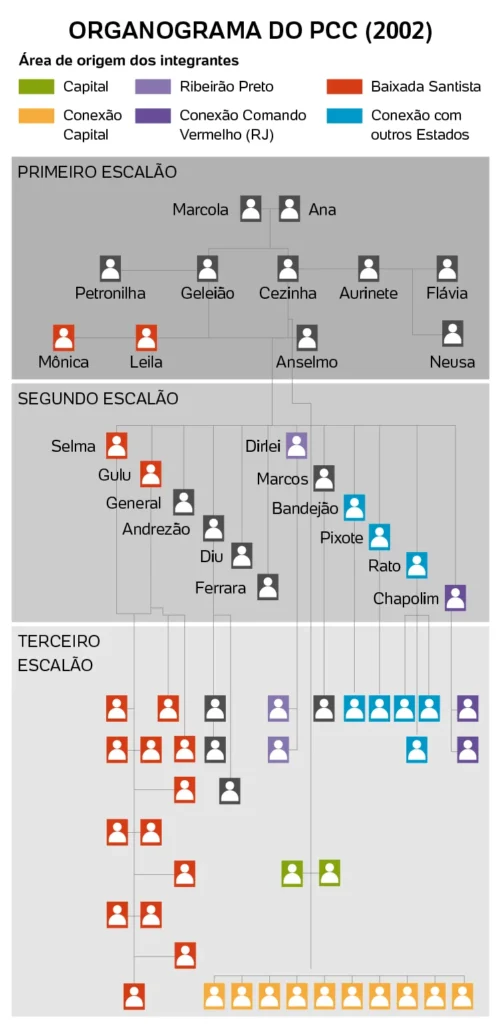Geração mais nova do PCC manda, mas não tem a palavra final. Toda ação incisiva, por exemplo uma decisão do “tribunal do crime” ou homicídio planejado, precisa do aval de altos escalões, segundo um delegado que investiga crime organizado na PF (Polícia Federal).