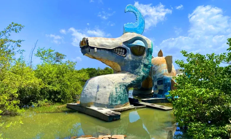SÃO LUÍS – A escultura da serpente “Lulu”, que fica dentro da Lagoa da Jansen, em São Luís, foi retirada do local com problemas na estrutura.