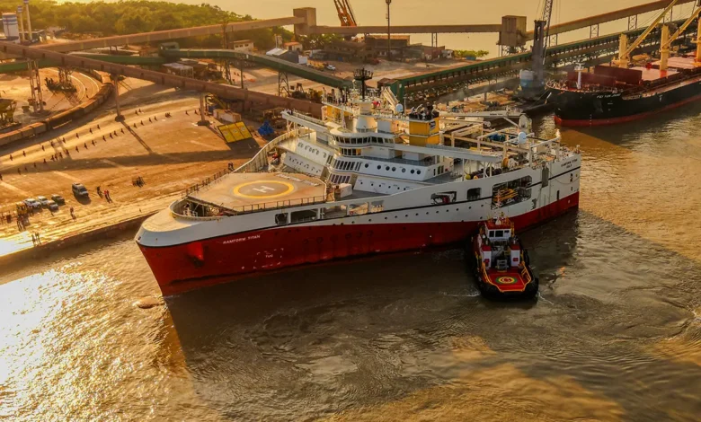 O navio Ramform Titan, da empresa norueguesa TGS, atracou nesta quarta-feira (22), no Porto do Itaqui, em São Luís (MA), para realizar pesquisas geológicas nas bacias do Pará-Maranhão e de Barreirinhas, duas das cinco bacias sedimentares que compõem a Margem Equatorial Brasileira (MEB), apontada como uma das novas fronteiras para exploração de petróleo e gás no Brasil. Uma comitiva integrada pelo governador do Maranhão, Carlos Brandão, executivos globais da TGS e autoridades vinculadas ao setor energético, esteve no porto para a recepção oficial do navio, considerado a maior embarcação sísmica do mundo. “A chegada desse navio é um marco importante na exploração da Margem Equatorial Brasileira. São cinco bacias, sendo que duas delas estão no Maranhão. É o primeiro passo de desenvolvimento para que a gente possa explorar o petróleo. Isso vai impulsionar a economia do nosso estado”, afirmou o governador Carlos Brandão.