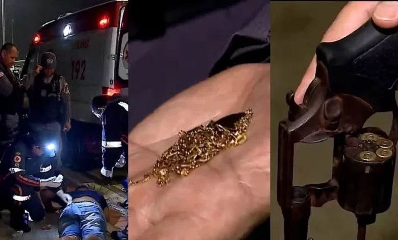 Com o suspeito, os policiais apreenderam um revólver calibre .38 com quatro munições, além de dois colares de ouro.