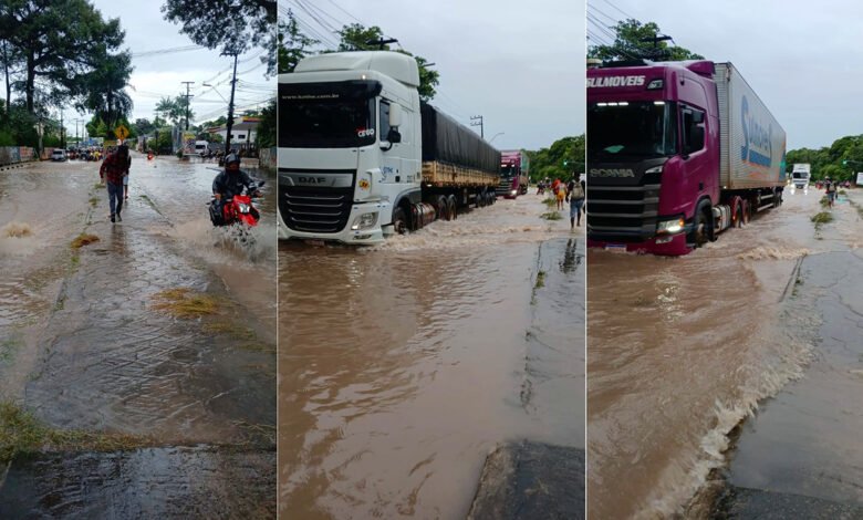 Com o avanço da água sobre a via, motoristas enfrentaram lentidão e dificuldade para seguir viagem. Motociclistas se arriscaram ao passar pelo trecho alagado, enquanto passageiros desembarcaram de ônibus e seguiram caminhando, mesmo com os riscos.