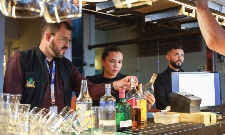 Na ação, agentes da Vigilância conversaram com donos e gerentes dos estabelecimentos sobre os riscos do metanol em bebidas alcoólicas, substância que pode causar graves danos à saúde.