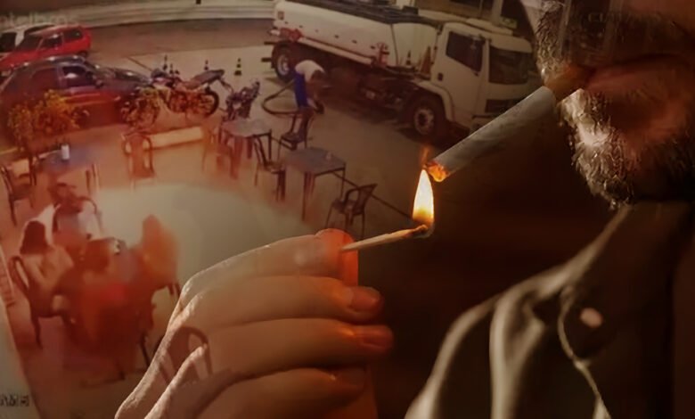Momento em que rapaz acende cigarro em posto de combustível – Reprodução: Redes Sociais