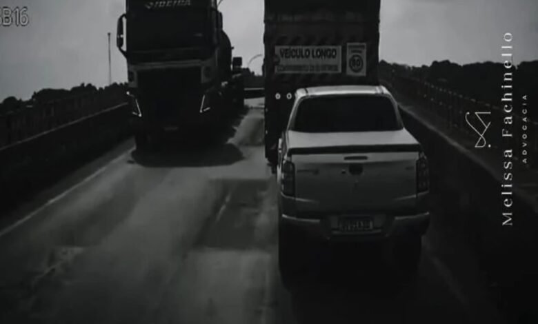 O vídeo foi compartilhado pela advogada Mellissa Fachinello, que presta serviços para a transportadora Expresso Geração, responsável pelo caminhão onde as imagens foram captadas.
