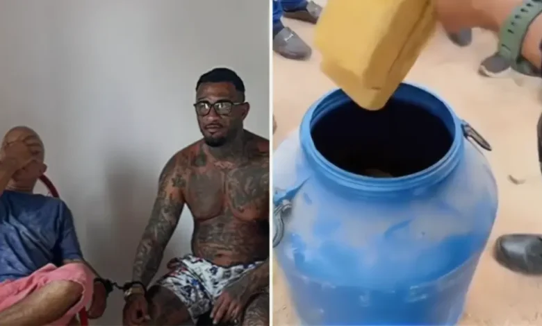 A droga estava escondida dentro de vários tonéis dentro de uma residência. Duas pessoas foram presas na ocasião.
