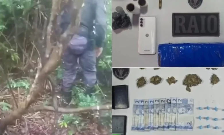 Durante as buscas na área, os policiais encontraram e apreenderam materiais ilícitos que haviam sido abandonados durante a fuga. Todo o material foi recolhido e apresentado na Delegacia de Polícia Civil de Raposa para a adoção dos procedimentos legais cabíveis.