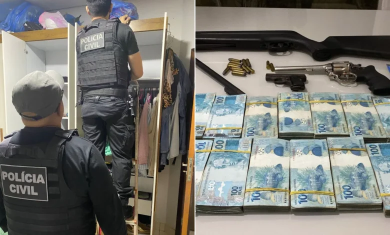 Foram apreendidos três notebooks, cinco aparelhos celulares, duas máquinas de cartão, dois tablets, nove pendrives, além de armamentos, incluindo um revólver calibre .38, uma pistola belga modelo FN M1905 e uma espingarda calibre .22. Também foi apreendida a quantia de R$ 160 mil em espécie.
