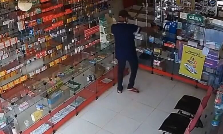 Um homem armado rendeu o proprietário, que reagiu tentando tomar a arma do assaltante. Durante a luta, o revólver caiu, mas o suspeito recuperou o controle e disparou duas vezes, sem atingir a vítima. Ele fugiu em seguida, e a Polícia Militar realiza buscas para capturá-lo. A ação foi registrada por cameras de videomonitoramento do local.