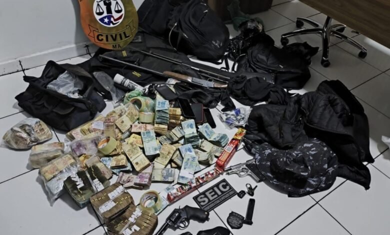 Policiais estiveram na Prefeitura de Estreito, na região Sul do Maranhão, e também na residência de Léo Cunha, onde apreenderam dinheiro e documentos. Na casa de Felipe dos Pneus, a polícia encontrou um celular dentro de um vaso sanitário.