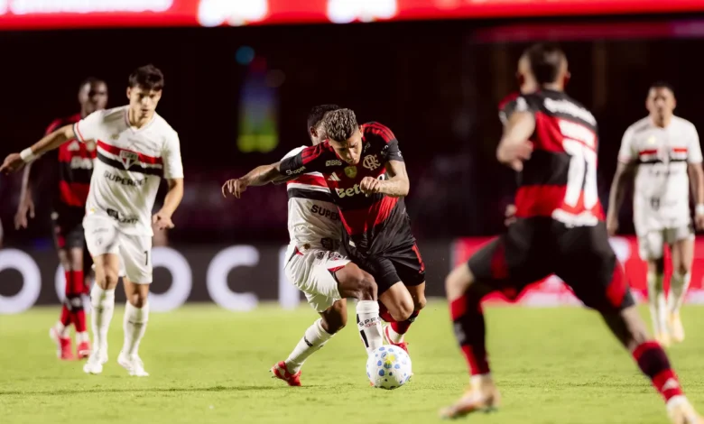 São Paulo – Atual campeão, o Flamengo perdeu para o São Paulo por 2 a 1, de virada, nesta quarta-feira (28), no Morumbis, pela primeira rodada do Campeonato Brasileiro. O Rubro-Negro saiu na frente com Gonzalo Plata, que aproveitou linda assistência de Pedro, de peito, e abriu o placar. O Tricolor Paulista, porém, contou com Luciano e Danielzinho para ficar com a vitória.