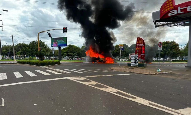 VÍDEO – Veículo que transportava pacientes em hemodiálise pega fogo em Imperatriz